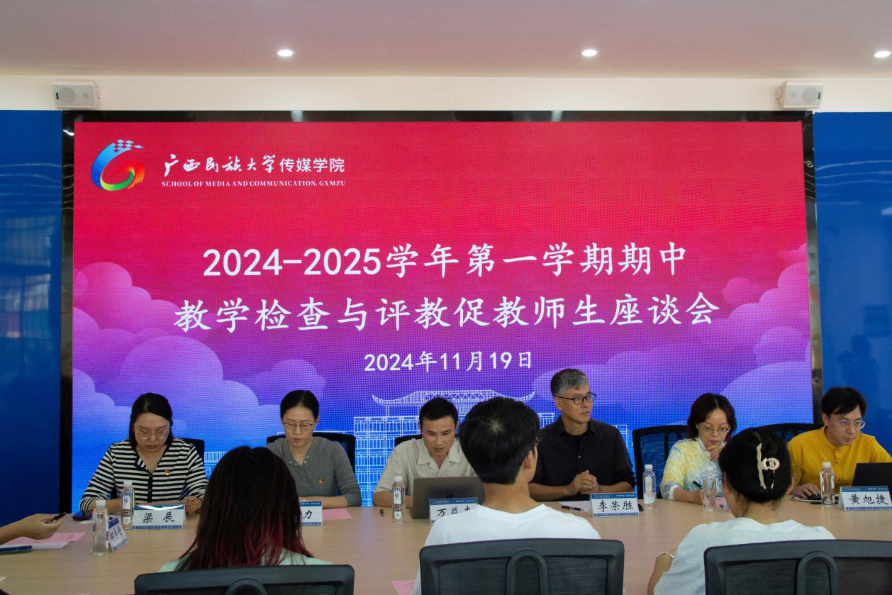 11月19日下午,m88在线客服2024—2025学年第一学期期中教学检查与评教促教师生座谈会于明德楼一楼大厅举行。学院副院长万益杰、校院两级教学督导及专业教师代表和22名学生代表参加本次座谈会,会议由教学秘书周洛影主持。