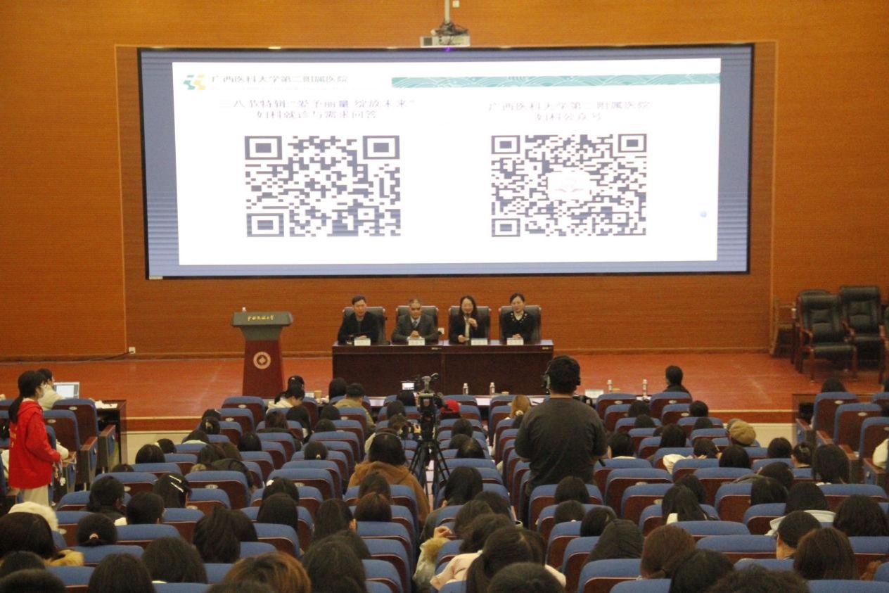 为纪念第115个“三八”国际妇女节,提高女性健康意识,3月6日晚,广西民族大学学生工作部(处)主办,m88在线客服承办的“爱予丽量 绽放未来”专题讲座在思源湖校区101报告厅举行,讲座特邀广西医科大学第二附属医院妇科韦业平、梁寿珺、刘传忠、赵秋雯、杨凤、张丽滢等专家宣讲并为同学们解答相关知识。m88在线客服副院长王文娟出席本次讲座。