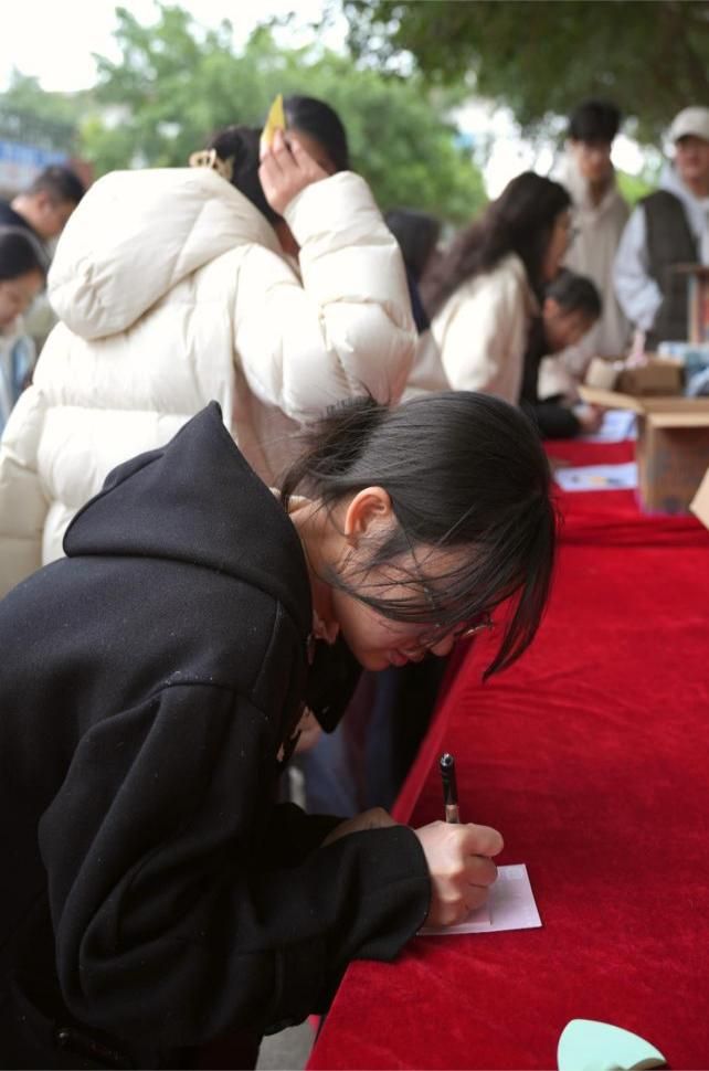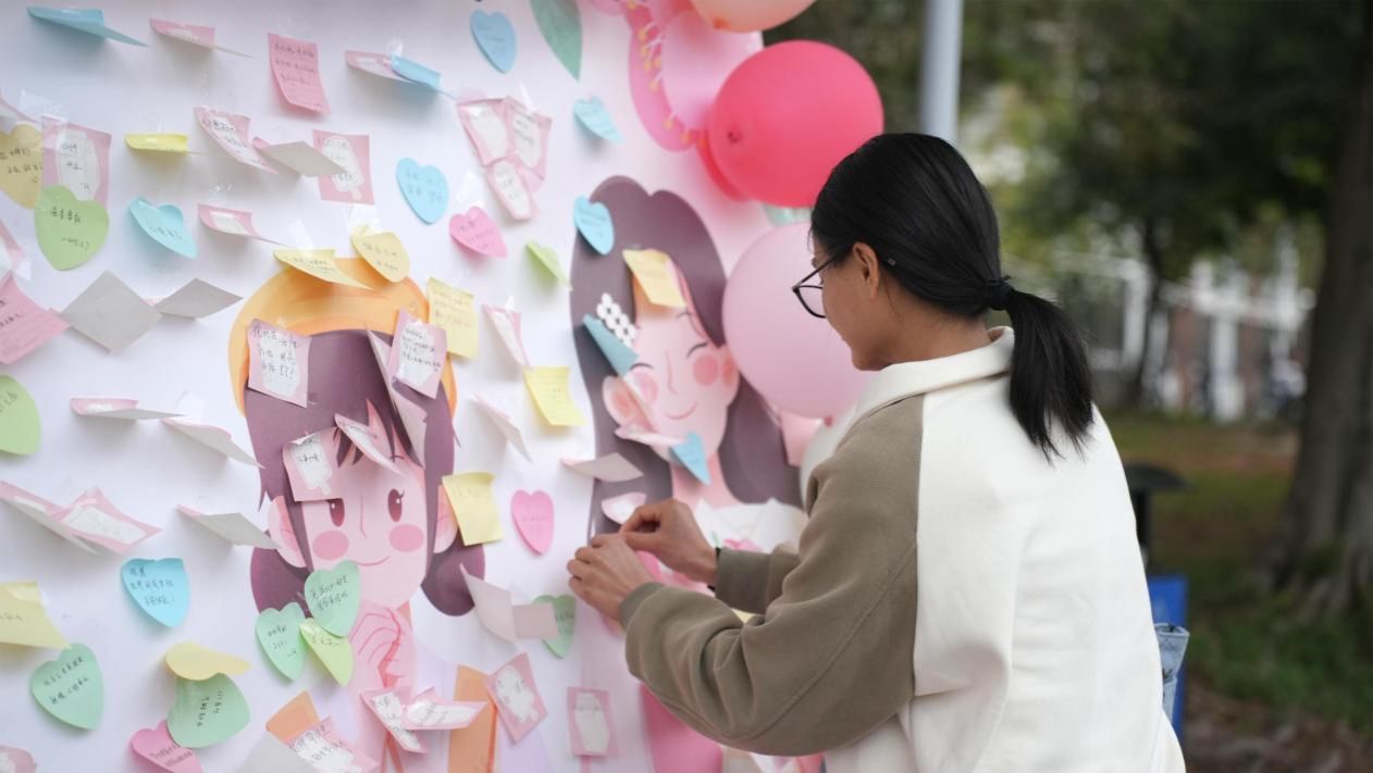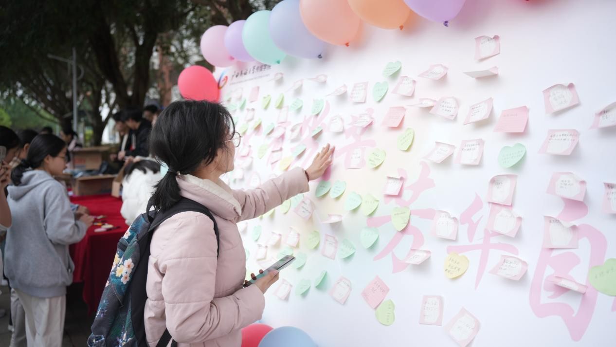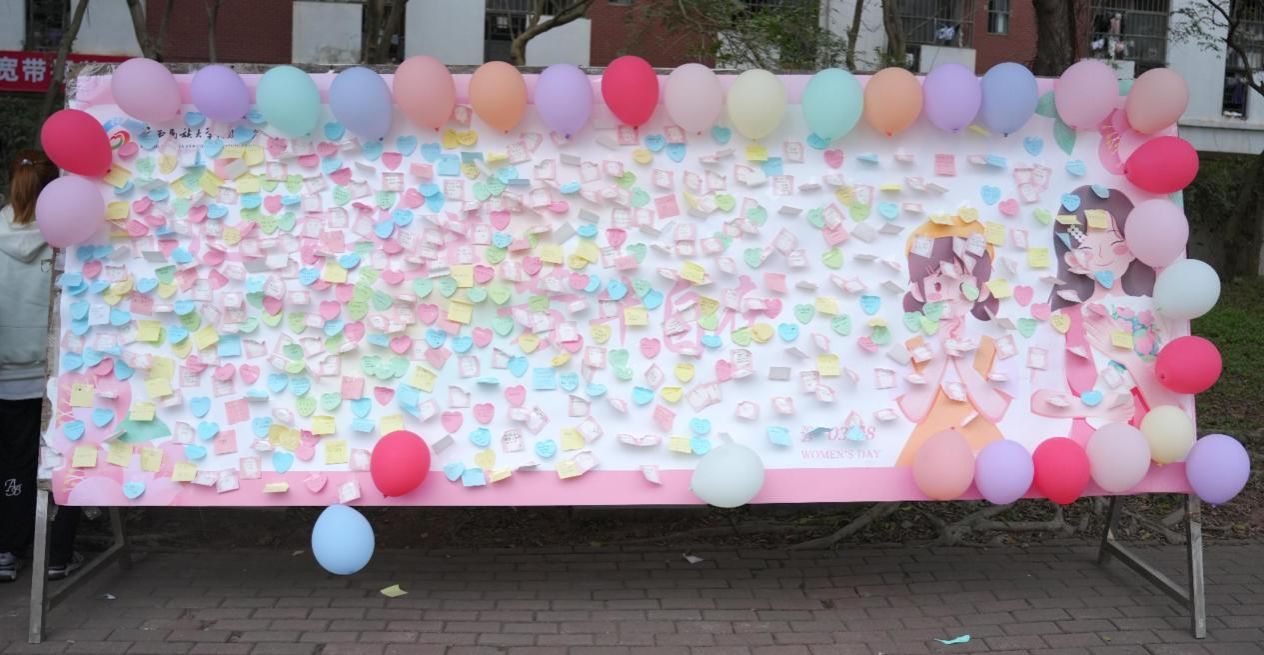 参与者在卡片上写下对女性的赞美之词,随后将卡片粘贴于展板上,参与抽奖,赢取精美小礼品。活动现场人头攒动,气氛热烈,同学们纷纷提笔,在卡片上留下祝福与关怀。整个活动过程井然有序,充满了温馨与感动。