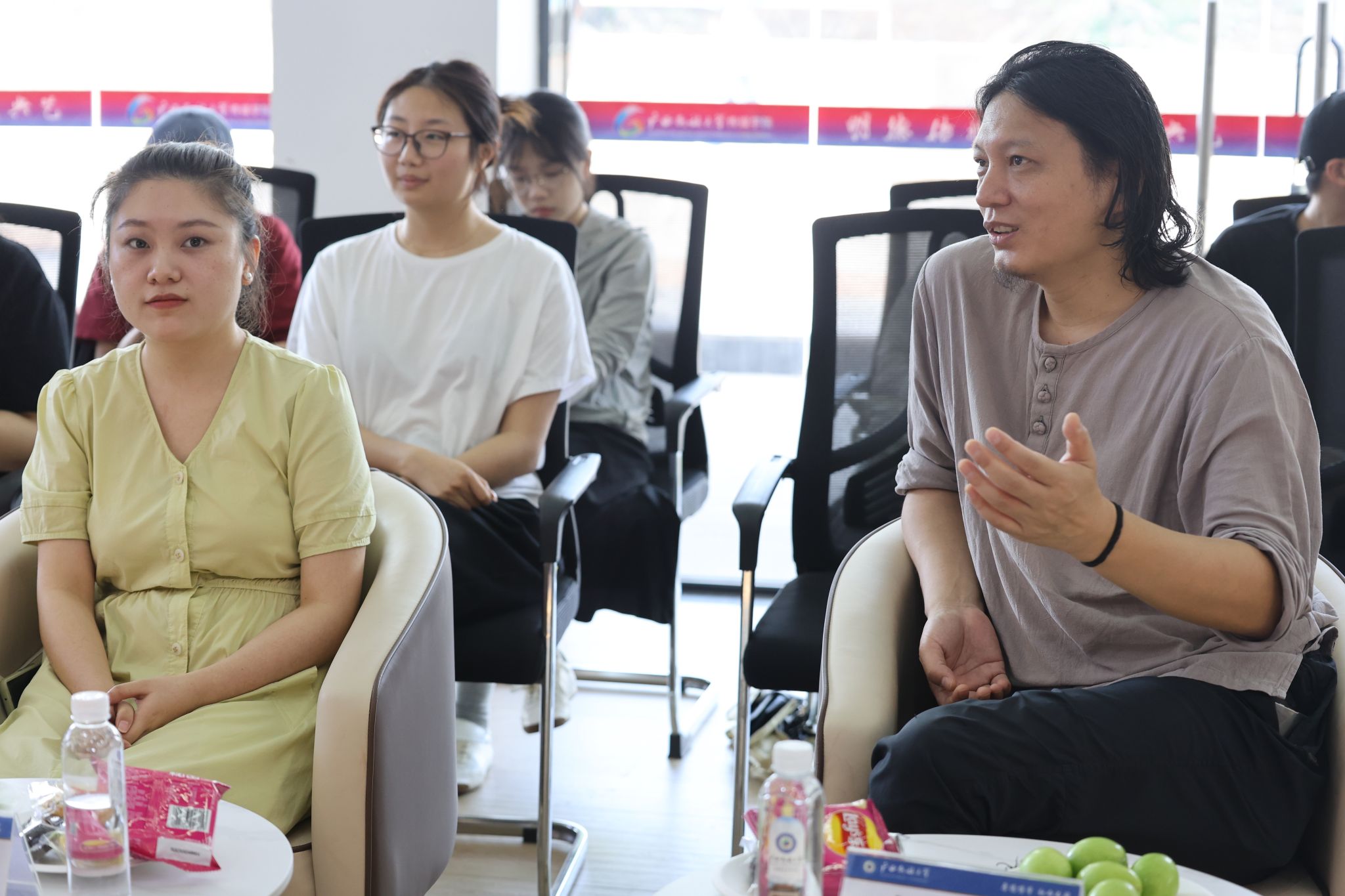 在互动环节,同学们也围绕主题分享了自己的感悟与观点。2024级新闻与传播专业硕士研究生吴文俊提出,年初美国封禁TikTok后有大量欧美网民涌入小红书,实现了跨越信息壁垒的直接交流。这种普通大众之间的互动就是从细微之处出发,以小见大讲好中国故事的有效途径。何杰锋老师对同学们的观点进行补充,指出传播应保持好奇心,每个专业都有其独特价值,文学、哲学、民族学和法学等专业都能从不同角度解释社会现象。学传播的学生应具备专业自信,通过深入分析发现新情况,推动专业发展。