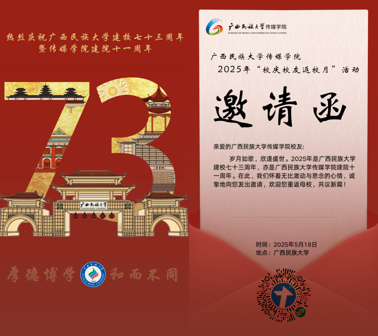 2. 请有意返校的校友,请在5月9日前扫描邀请函上的二维码报名,方便学院提前做好筹备。