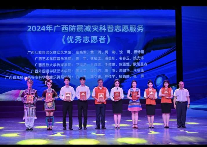 2025年“5·12”全国防灾减灾日广西刘三姐+防震减灾科普志愿服务活动5月12日晚在广西明星剧场举行。manbet手机app下载师生受邀参与这一活动,广受好评。