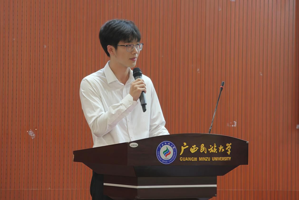 首先,2023级播音与主持艺术专业1班胡奥杨作为入团积极分子代表进行发言。他回顾过往心路历程,深刻认识到共青团作为党的助手和后备军的责任与担当,并倡议全体同学都应坚定信念、脚踏实地,把个人理想融入党和国家的事业当中,用青春和奋斗书写无愧时代的答卷。