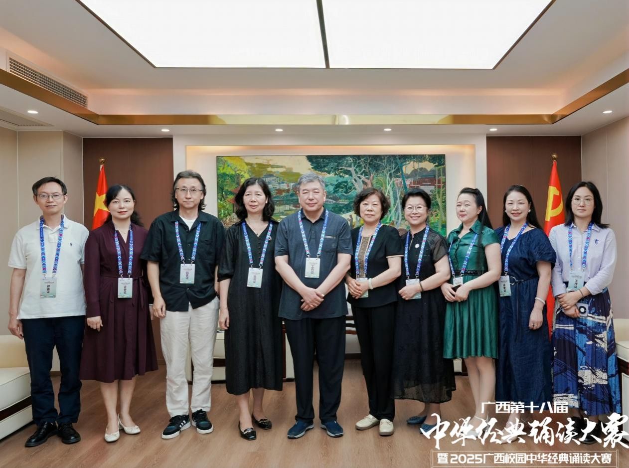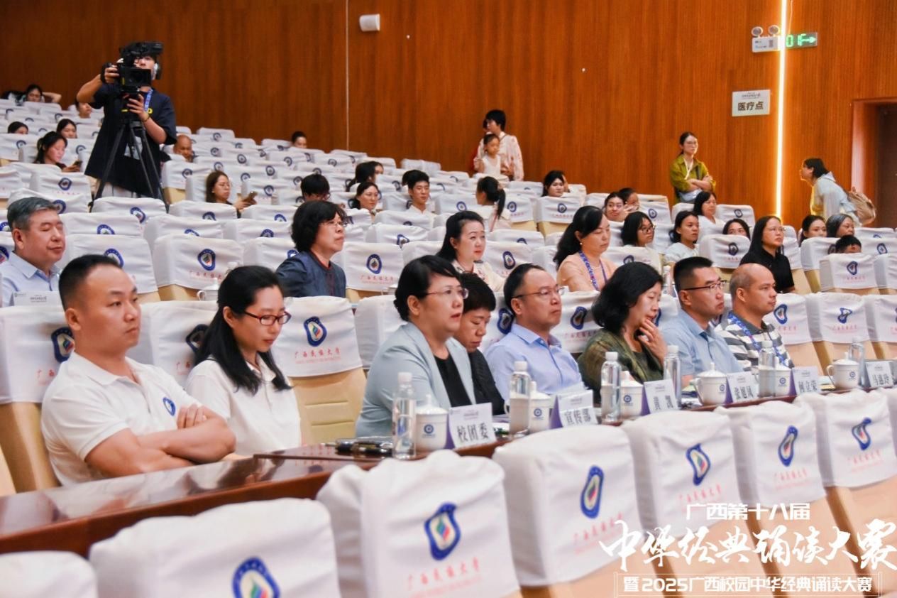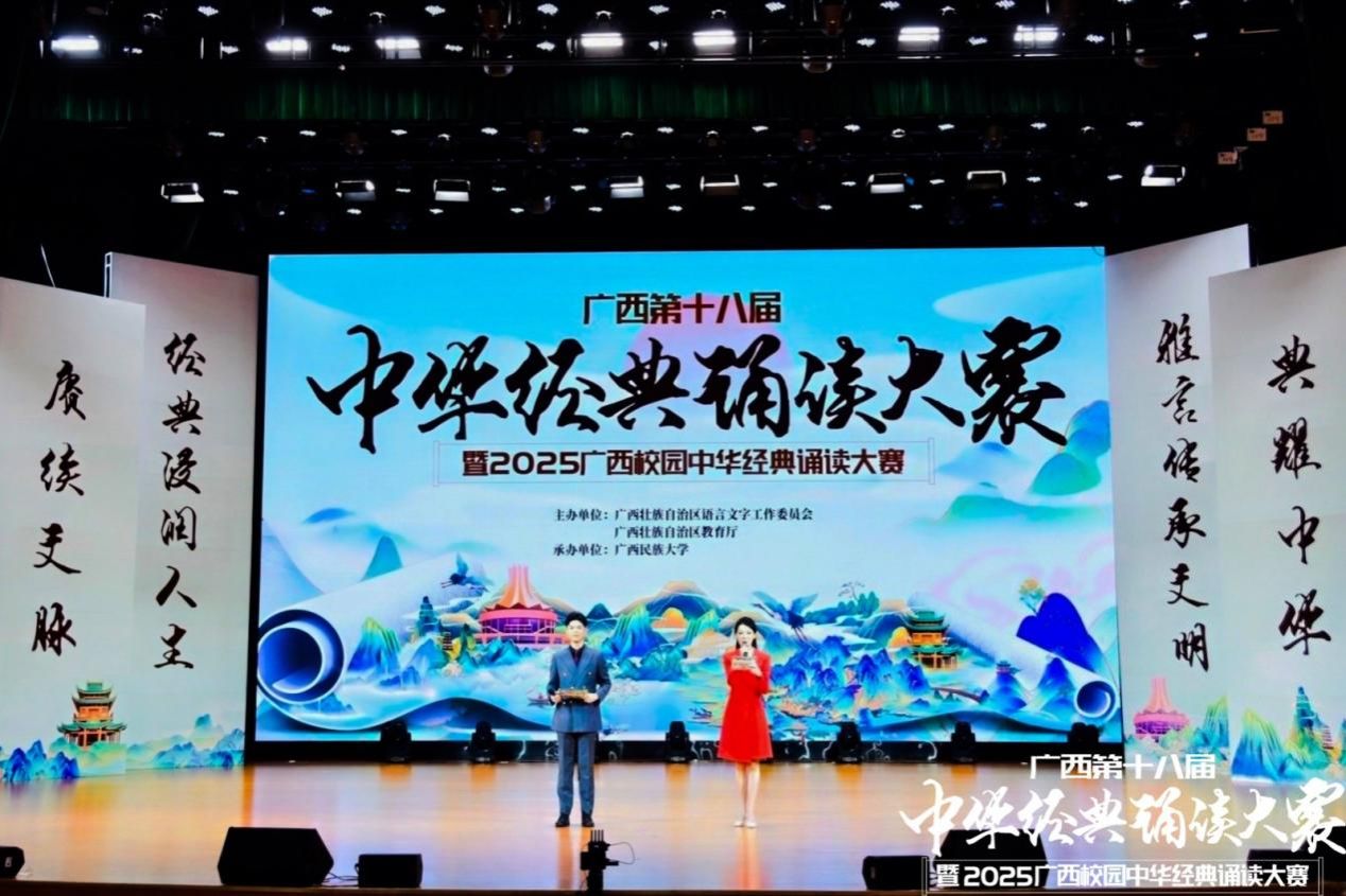 6月16日,由自治区语委、自治区教育厅主办,广西民族大学承办的广西第十八届中华经典诵读大赛暨2025广西校园中华经典诵读大赛现场总决赛在广西民族大学思源湖校区大学生活动中心圆满落幕。自治区教育厅副厅长张旭凤,广西民族大学党委常委、副校长何立荣,中国教育电视台制片人、诵读大赛项目负责人马惠玲等领导、嘉宾莅临总决赛现场。赛事评委会组长由教育部语言文字应用管理司原副司长、语言文字应用研究所原所长张世平担任。