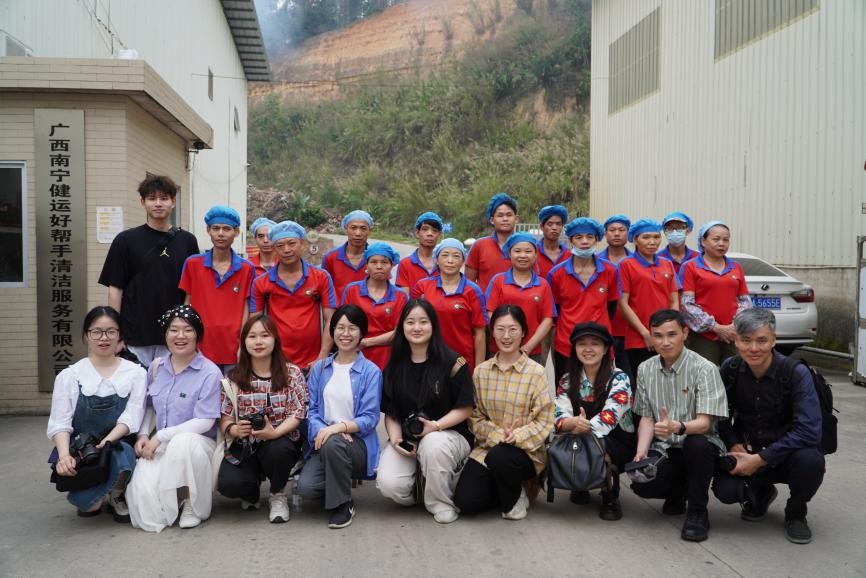 3月29日,为落实立德树人根本任务,全面推进课程思政建设,在学院教工第二党支部党员、广播电视编导教研室主任万益杰,新闻学教研室主任胡洁虹及编导专任教师李荣胜的组织与指导下,manbet手机app下载2023级新闻与传播专业研究生积极行动,赴南宁五塘健运好帮手清洁服务有限公司开展了一场以“致敬坚韧力量”为主题的拍摄活动。活动深度聚焦残障工人生活及职业发展,弘扬新时代奋斗精神。
